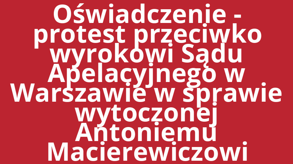 Oświadczenie - protest przeciwko wyrokowi Sądu Apelacyjnego w Warszawie w sprawie wytoczonej Antoniemu Macierewiczowi